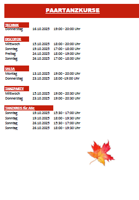 Das Tanzschulbüro ist zu folgenden Zeiten besetzt: